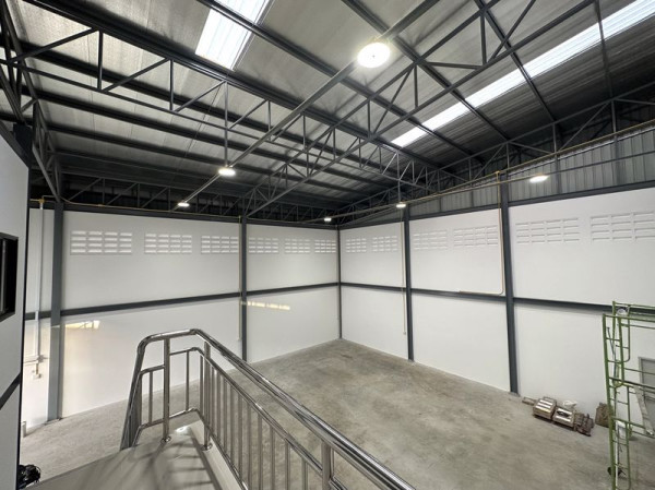 ให้เช่าโกดัง/โรงงาน ซอยไทยประกัน บางเสาธง ถนนเทพารักษ์ เนื้อที่ดิน 100 ตร.ว. พื้นที่ใช้สอยรวมทั้งหมด 432 ตร.ม. แบ่งเป็นพื้นที่โกดังขนาด 208 ตร.ม.(กว้าง 13 เมตร ลึก 16 เมตร) พื้นที่ออฟฟิศ 2 ชั้น ขนาด 64 ตร.ม.(กว้าง 4 เมตร ลึก 8 เมตร) มีห้องออฟฟิศ/ห้องน้ำคนงาน พื้นรับน้ำหนักเครื่องจักรได้ 2 ตัน/ตร.ม. จอดรถได้ 4-5 คัน ทำเลดี ตั้งอยู่ในพื้นที่สีม่วงรองรับขอใบอนุญาตโรงงาน รง.4 สาธารณูปโภคครบพร้อมเข้าอยู่