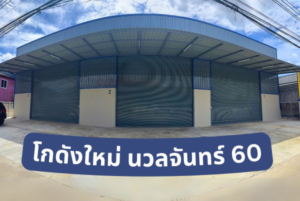 ให้เช่าโกดังนวลจันทร์ ซอยนวลจันทร์ เข้าซอยไม่ลึก ขนาด 266 ตร.ม. ใกล้เลียบด่วน รถใหญ่เข้าได้